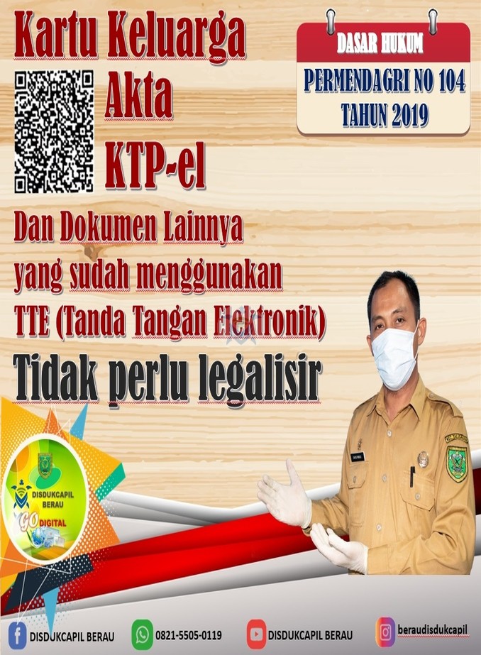 KARTU KELUARGA, KTP-el, AKTA PENCATATAN SIPIL Dan DOKUMEN KEPENDUDUKAN LAINNYA yang sudah menggunakan TTE ( Tanda Tangan Elektronik ) TIDAK PERLU LEGALISIR DASAR HUKUM PERMENDAGRI NO 104 TAHUN 2019